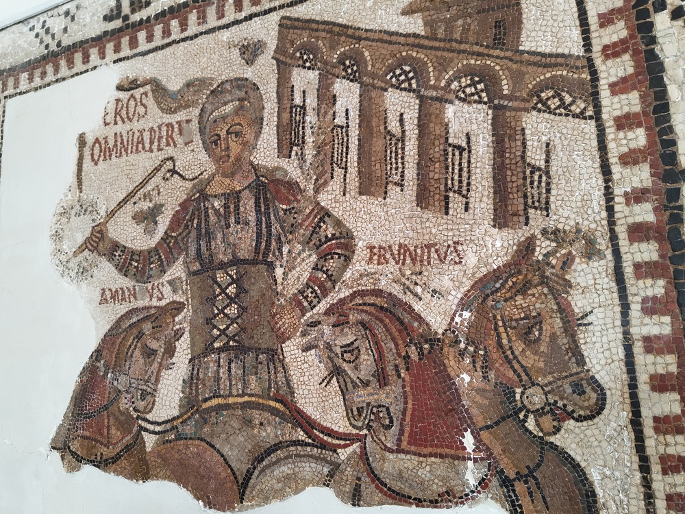 Победоносный кучер Красной фракции по имени Эрос на квадриге: Эрос, все за тебя! << Eros, omnia per ie! >> Начало IV века. Дугга. Дом.