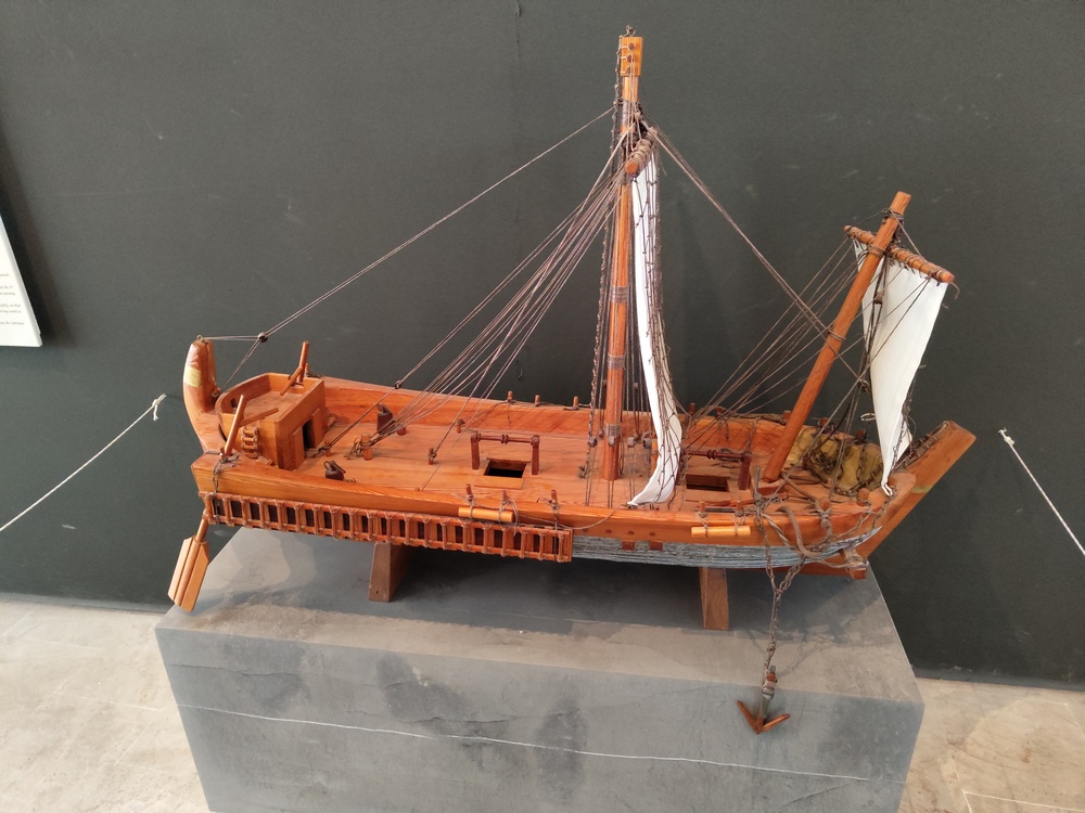 Реконструкция корабля на котором нашли капители и вазы перевозимые из Греции. Он затонул рядом с городом Сус