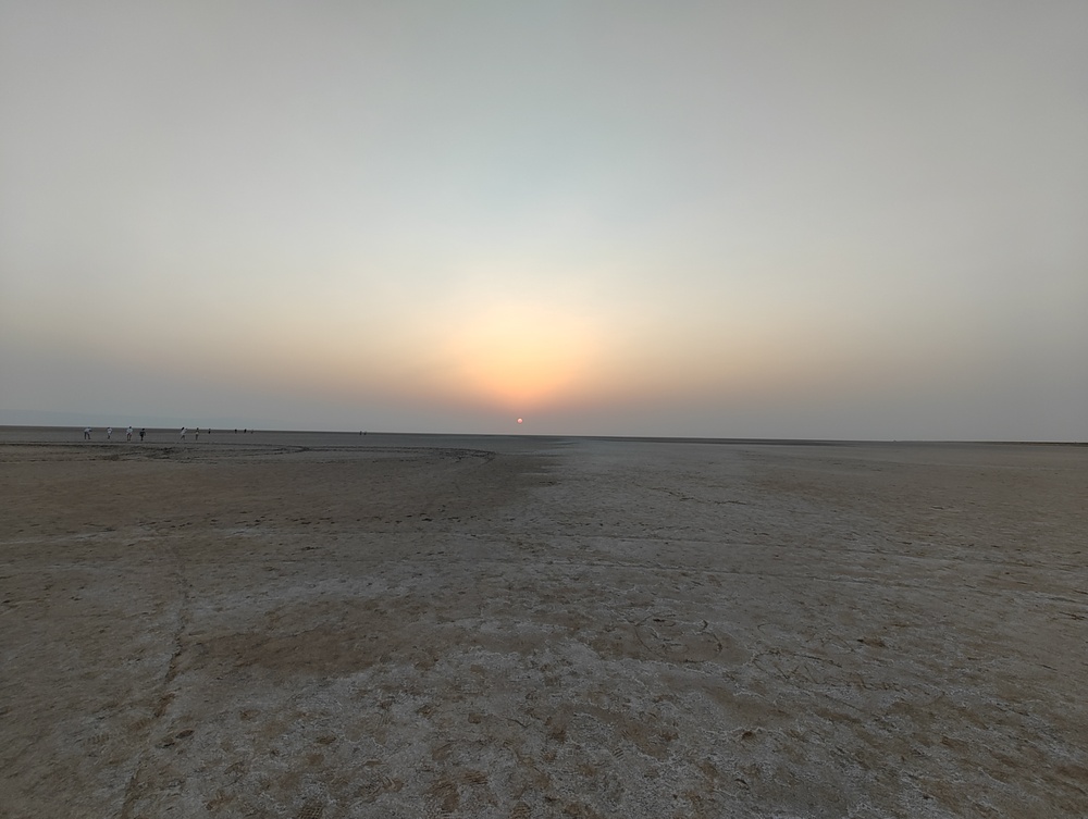 Встреча восхода солнца на солончаках. Высохших соляных озерах.